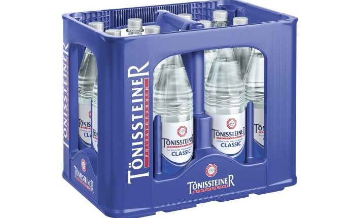 The perfect-fit design of the reusable rPET bottle means it can be used with TÖNISSTEINER’s existing twelve-bottle crates. Up to 160 crates containing 1,920 more bottles can be transported per lorry load. The optimised return of empty TÖNISSTEINER rPET and glass containers on a pallet of standardised crates also speeds up the cycle and reduces the bottle sorting work of wholesalers and retailers.