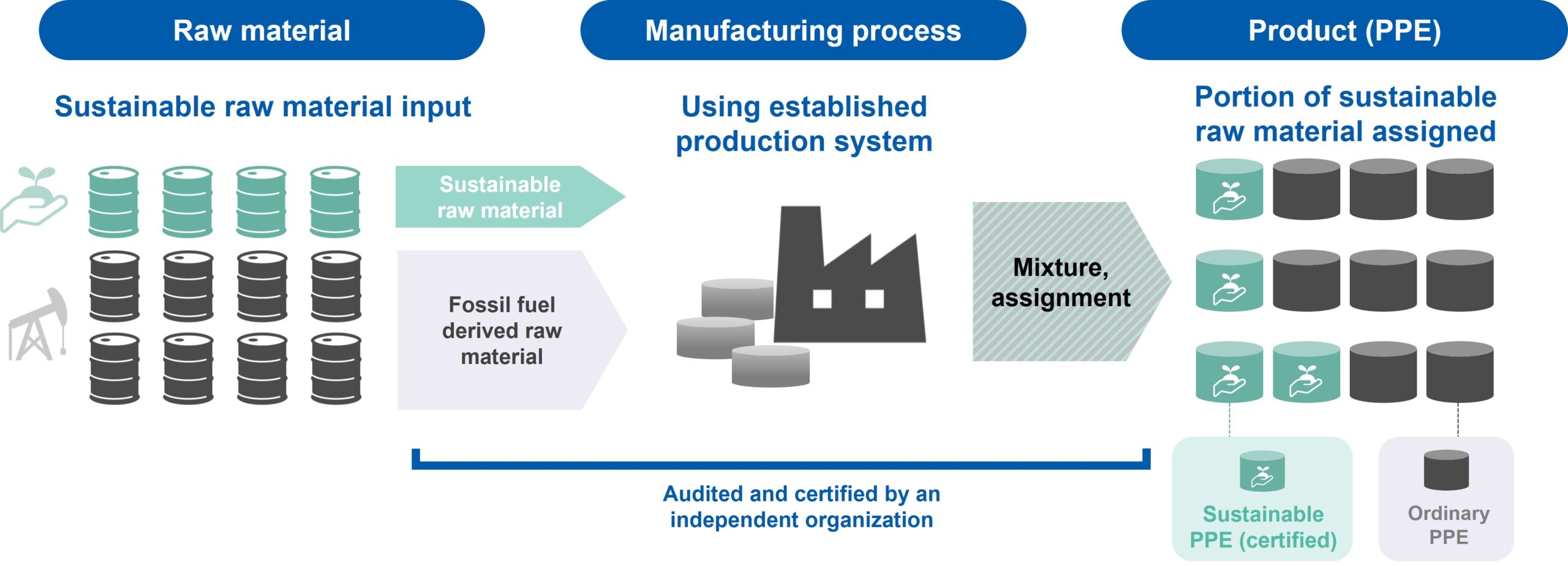 Under these circumstances, Asahi Kasei and APS sought to reduce CO2 emissions across the supply chain for Xyrontm m-PPE, and in September 2022, APS became the first PPE manufacturer in Asia2 to acquire ISCC Plus certification. The certification enables APS to produce and sell PPE using sus- tainable raw material assigned by the mass-balance method3. The production start is planned for Jan- uary 2023.