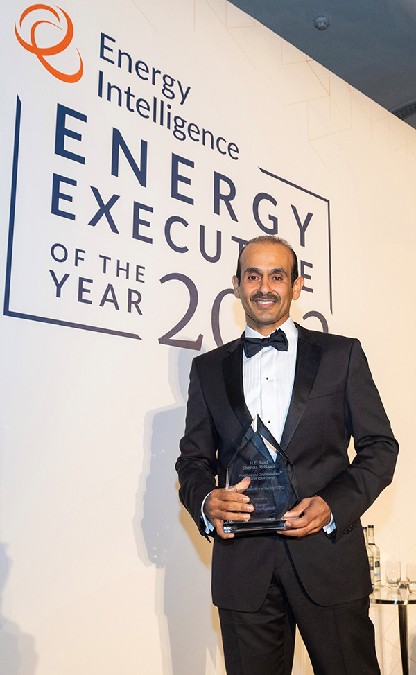 His Excellency Mr. Saad Sherida Al-Kaabi, the Minister of State for Energy Affairs, the President and CEO of QatarEnergy, received the 2022 “Energy Executive of the Year” award, which was presented to him by Energy Intelligence – the world’s leading energy information company.