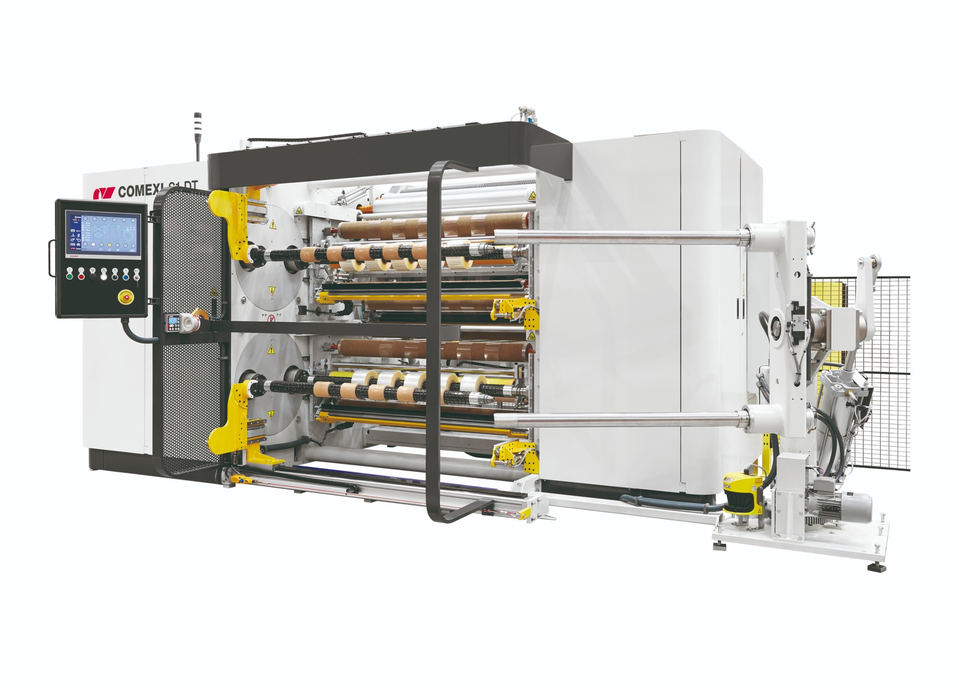 The Comexi S1 DT is a slitter which provides excellent results in both quality and productivity, even in regard to the most demanding jobs, due to its state-of-the-art control elements and high degree of automation. Cores, knives, laser heads, photocells, and almost every adjusting element of the machine are self-calibrating, as a result of an extremely interactive and easy-going user interface. This unique automation of the Comexi S1 DT gives the operator, without the need to intervene, the possibility to load the reel into the machine and deliver finished reels. The turreted version of the Comexi S1 DT is capable of performing jobs which require a large number of output reels. It is also able to work with the thickest materials used in the flexible packaging market, including aluminium, wax, and other special or complex materials. The Comexi S1 DT allows for a high degree of customization, as well as many automated options, such as splicing tables, automatic reel unloading, video camera inspection, and label robotization of finished reels, thus fully guaranteeing complete system control and an exceptional increase in productivity.