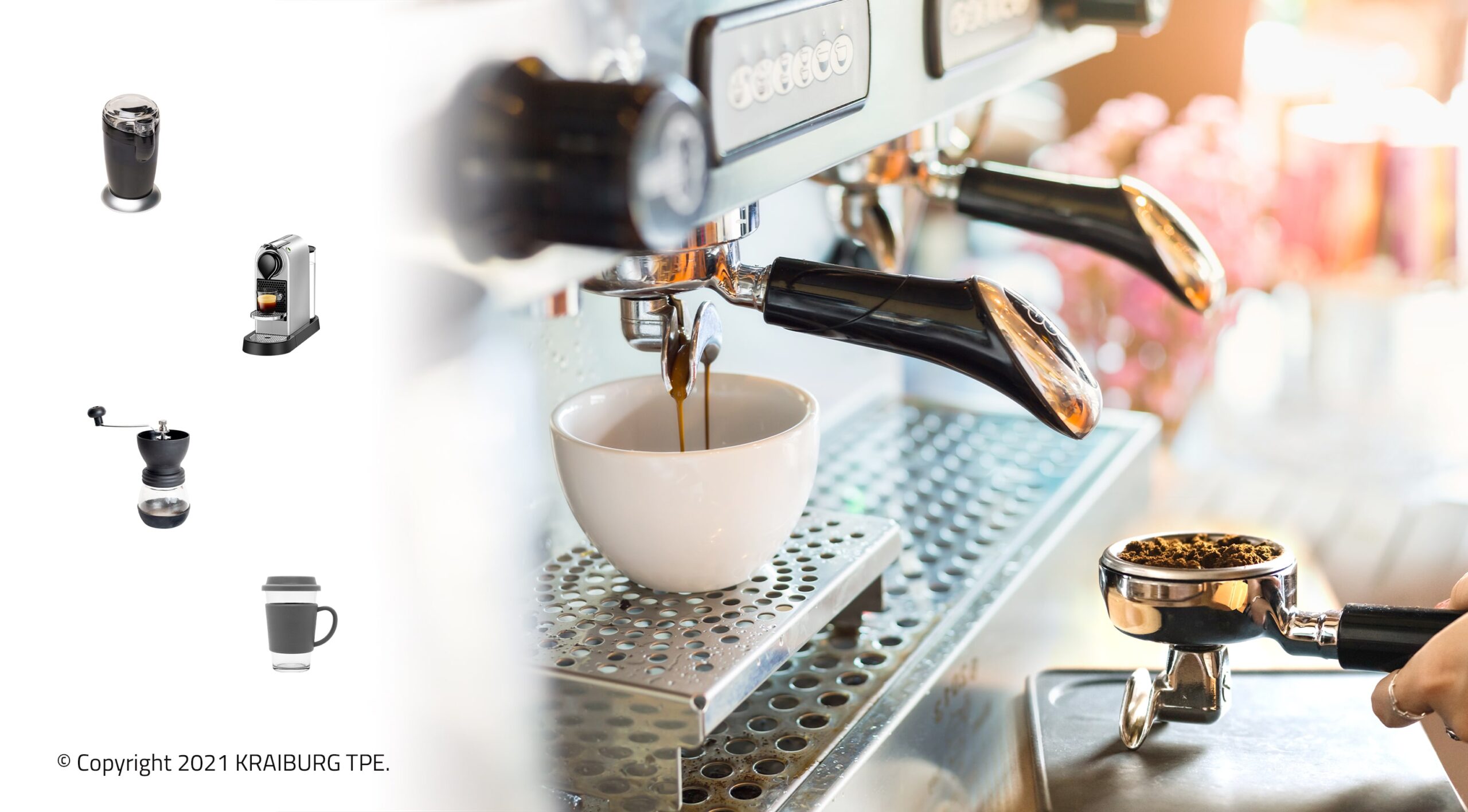 KRAIBURG TPE, a global TPE manufacturer of a diverse range of thermoplastic elastomer products and custom solutions for a variety of industries, brews a perfect blend of design and functionality for coffee makers with its THERMOLAST® K FC/AD/PA and FC/CS series of compounds.