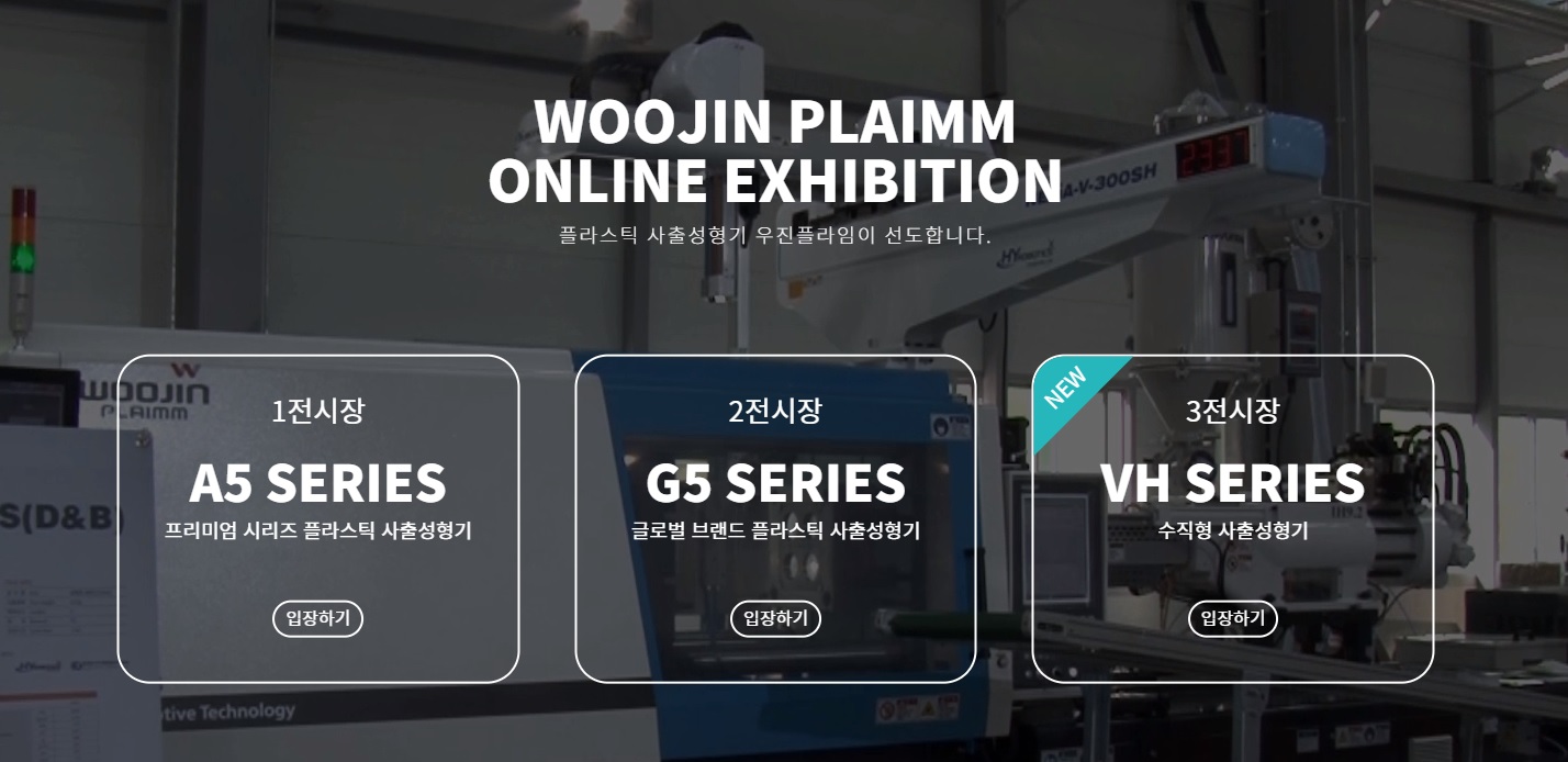 Visitors can access the online exhibitions without any registration process. Based on a road-view format, visitors move from presentation to presentation with just a click and watch Woojin Plaimm experts introduce the operating principles of injection molding machines by each machine series.